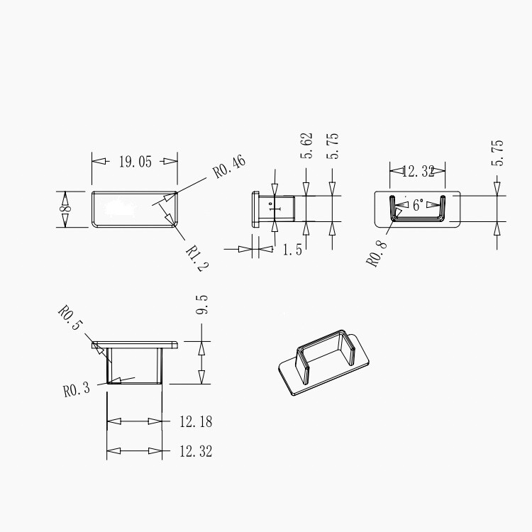 Kryty D1O, D1C, D1F a D1D pro profily R1, V5, N8, N10, N12, R6, N14 a další, 4 varianty krytů
