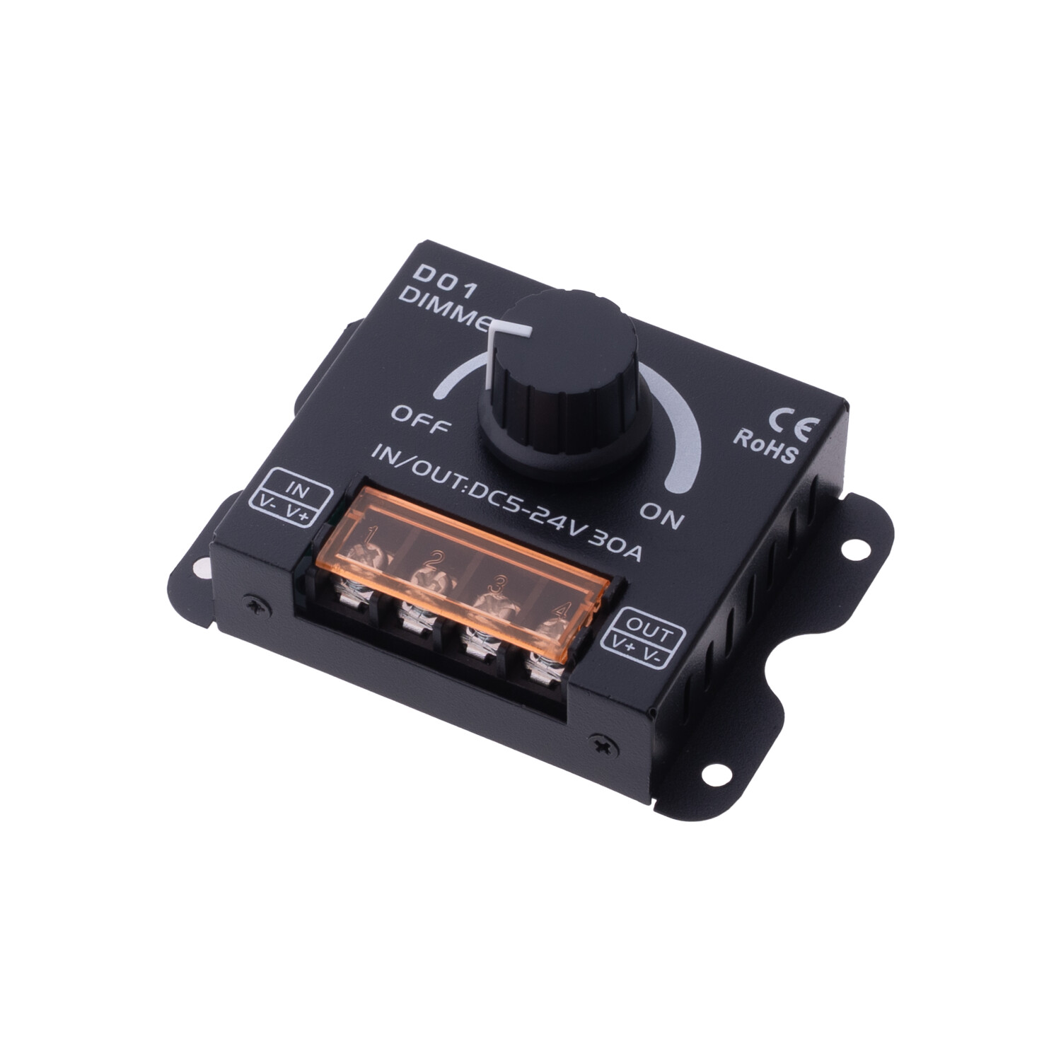 Stmívač a vypínač 1kanálový RF (radiofrekvenční) s dálkovým a manuálním ovládáním intensity jasu jednobarevných LED pásků, stmívatelných LED žárovek 5-24V a jednobarevných modulů. Přijímač může být ukrytý (za zdí, sádrokartónem či ve skříni), není nutná přímá viditelnost přijímače pro ovladač. LED ovladač RFM umožňuje ovládat 1 zónu samostatně. Světlo můžete ovládat jak dálkovým ovladačem, tak manuálně kolečkem na přijímači.