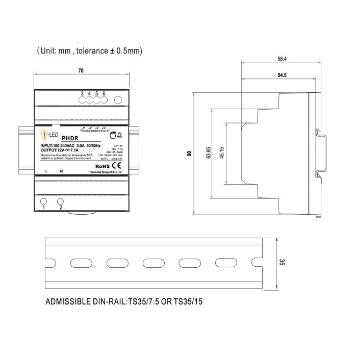 | Výstupní napětí | 12V DC / 7,5A | ||