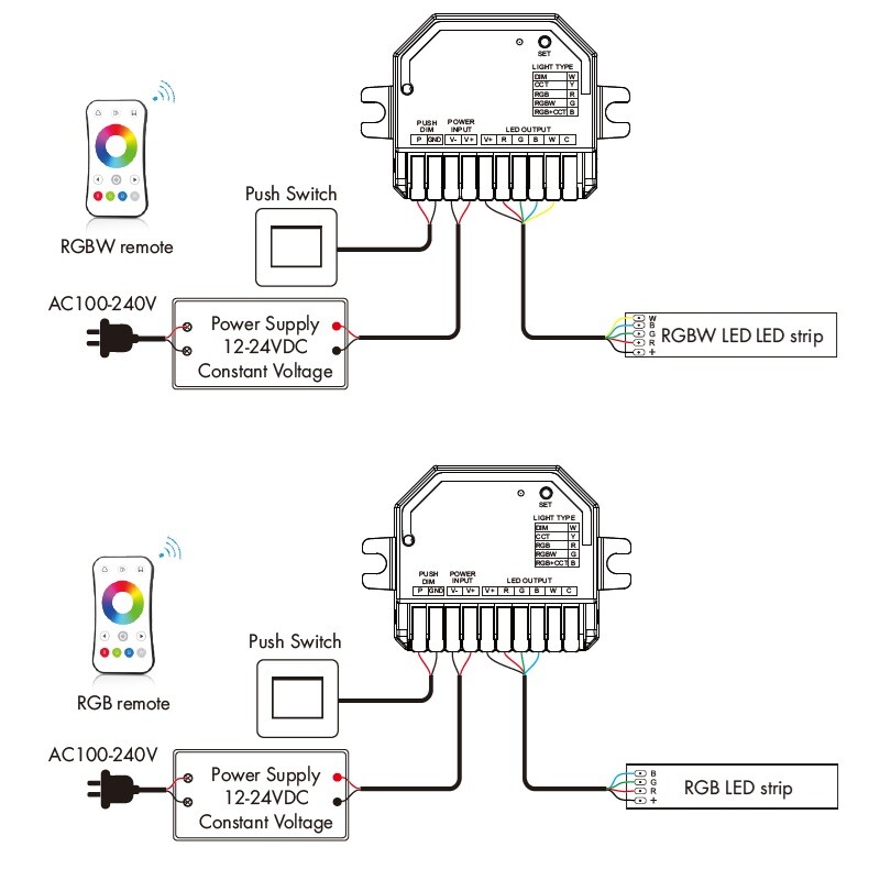 Pro ovládání více okruhů je nutno použít jeden přijímač na každý okruh. Na každý přijímač lze napárovat až 10 různých ovladačů řady dimLED a tak ovládat z několika míst. V případě přerušení a poté opětovného připojení napájení (například přerušením napájení zdroje) má tento přijímač paměť nastavení intenzity (intenzita osvětlení se vrátí na naposled nastavenou).
